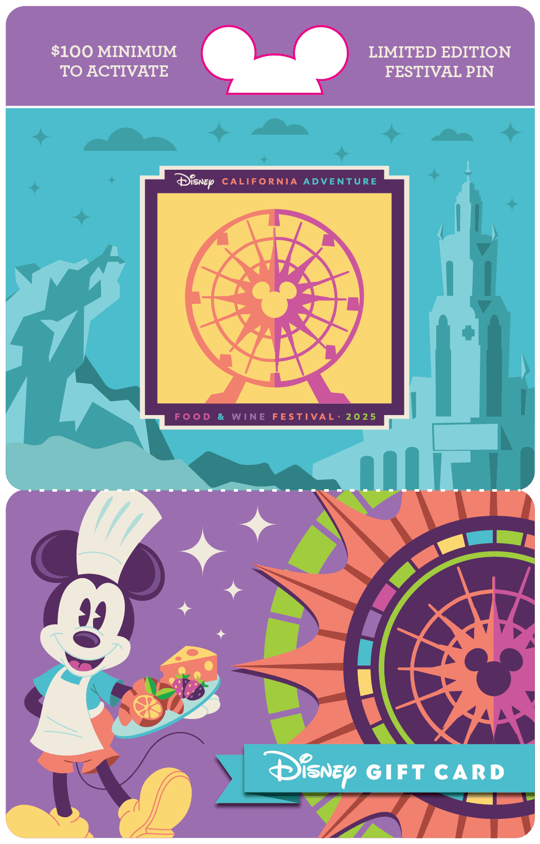 2025 gift card and carrier designs for Disneyland Resort and Walt Disney World.