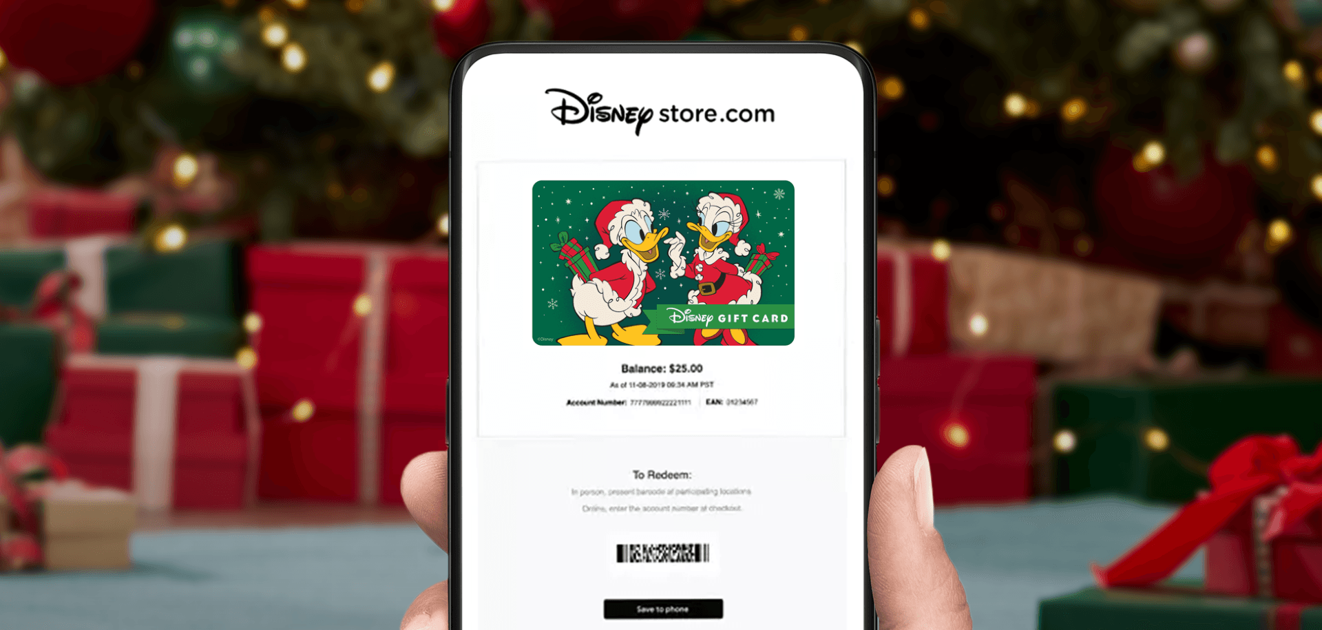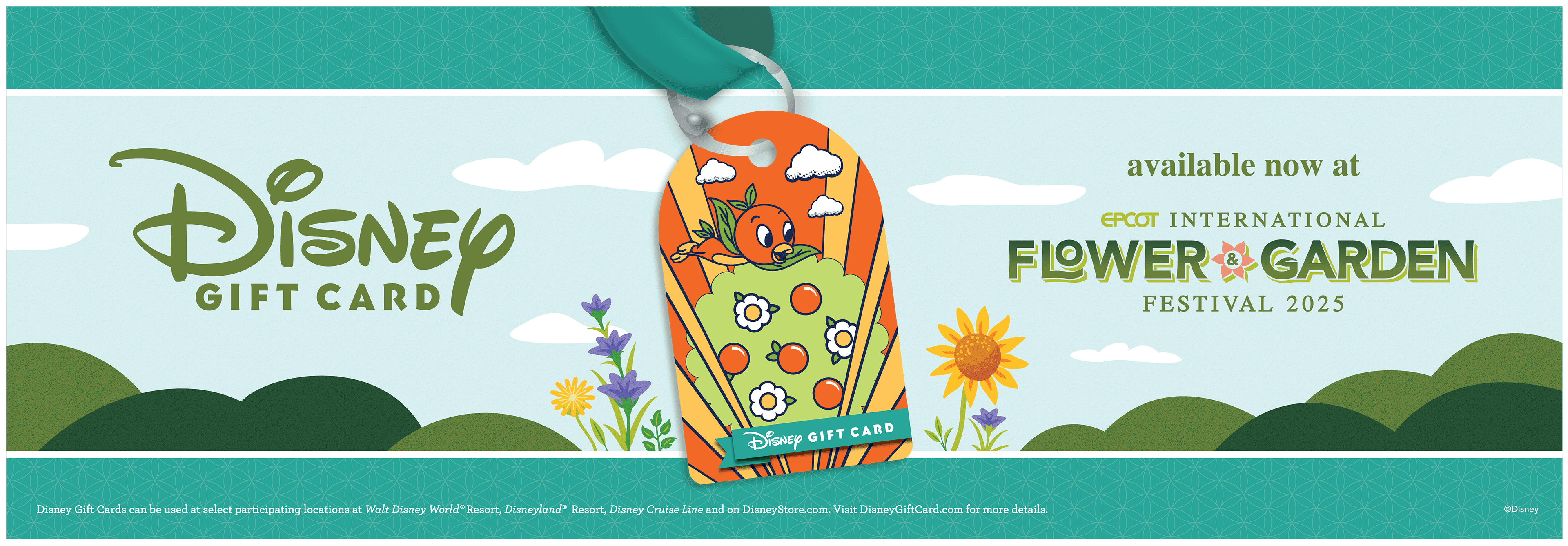 2025 Holiday gift cards and associated carriers — available in person at Disney Parks, and for digital purchase.
