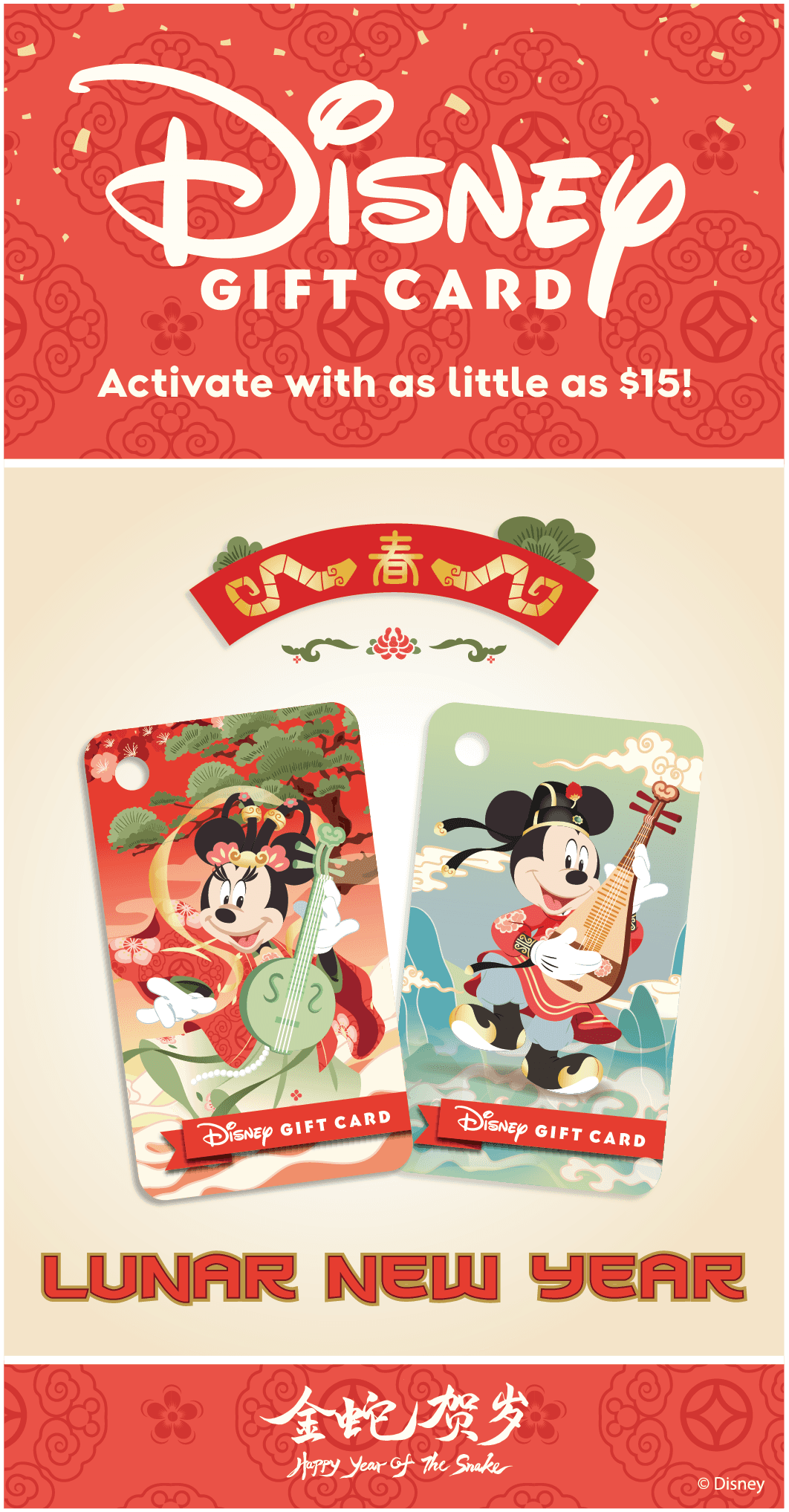 A set of two gift cards designed for the Lunar New Year Festival at Disneyland Resort.